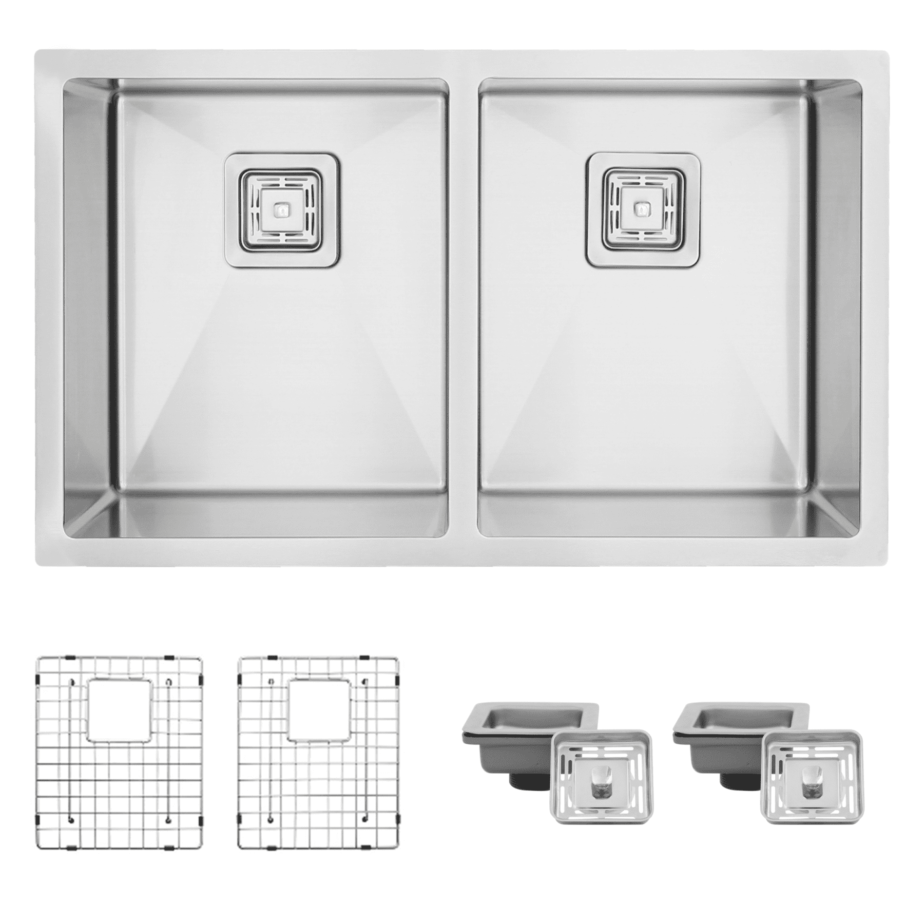 AZUNI – AZUNI 32″L x 18″W Double Basin Dual mount Kitchen Sink with Grids and Strainers