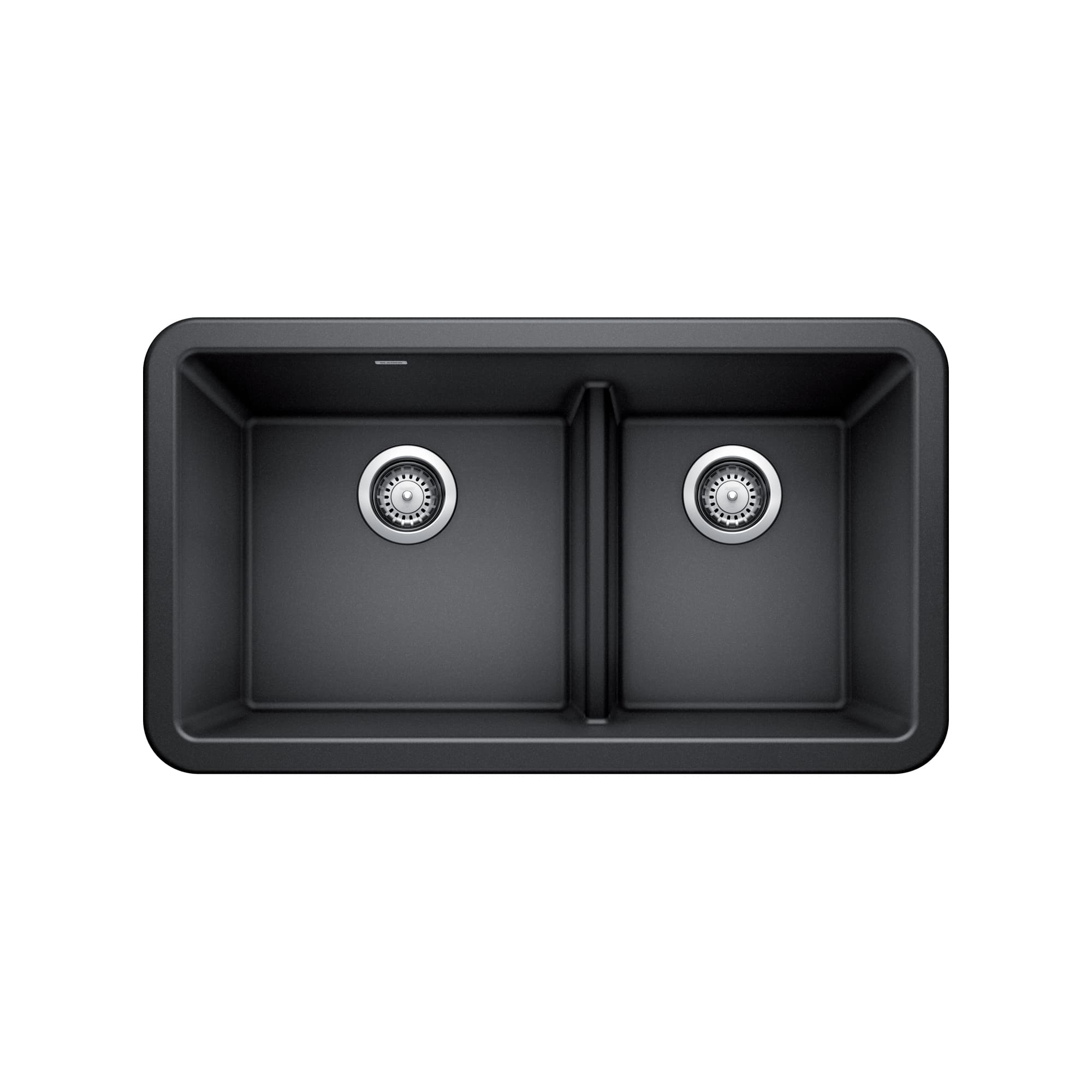 33″ farmhouse double bowl kitchen sink with a low divide. IKON sinks combine the popular apron front style with the beauty, strength and durability of our SILGRANIT® material. With its slightly angled apron design, IKON sinks will add a bold, architectural element to your kitchen. Low divide allows you to maneuver large pots, pans and baking sheets with ease. Slightly tapered apron front design brings an architectural element to your kitchen.