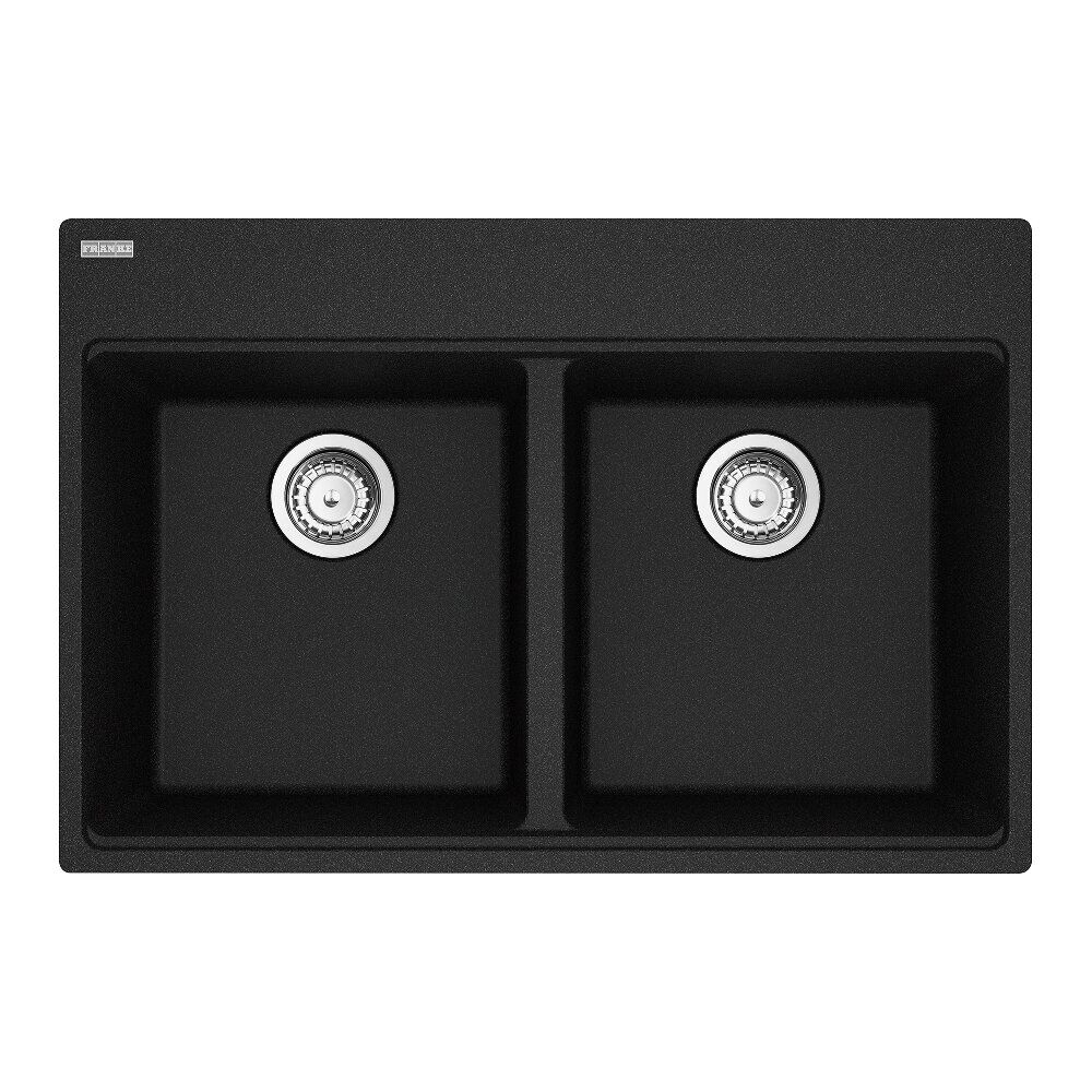Franke Maris Topmount 33-in x 22-in Granite Double Bowl Kitchen Sink in Onyx